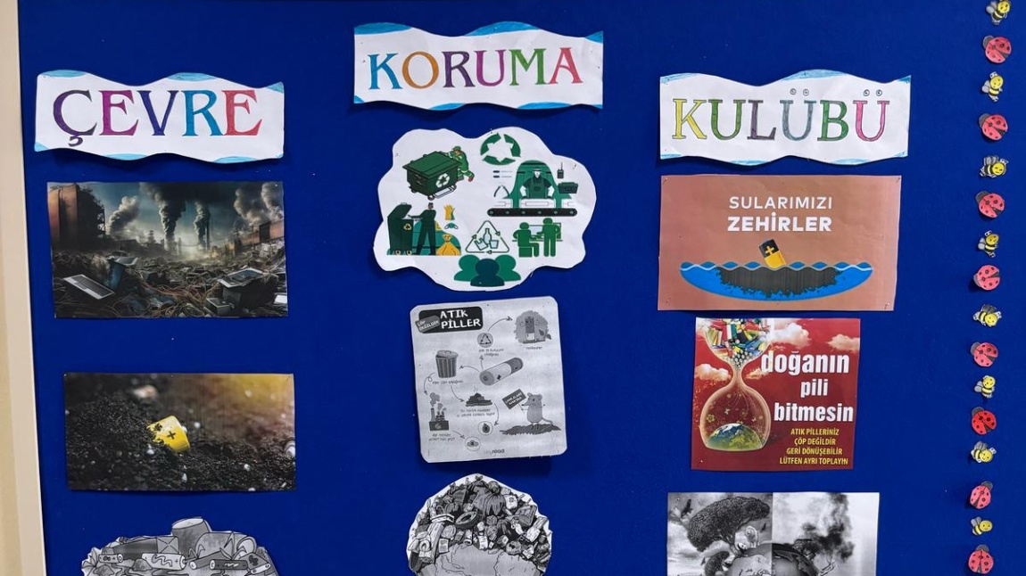 Çevre Koruma Kulübü tarafından atık pillerin çevreye olan zararlareına dikkat çekmek ve geridönüşüm farkındalığı oluşturmak amacıyla pano düzenlenmiştir.